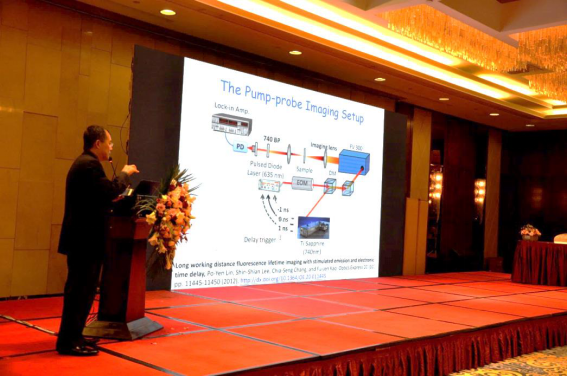 中国台湾阳明大学Fu-Jen Kao教授介绍了基于受激辅射的时间分辨泵浦探针显微成像技术进展,指出通过解调荧光信号,可以在背景信号大大减小的情况下获得荧光寿命和光学截面图像,从而改善信噪比,并像多光子显微镜一样提升穿透深度,且无需扩展的飞秒激光光源。