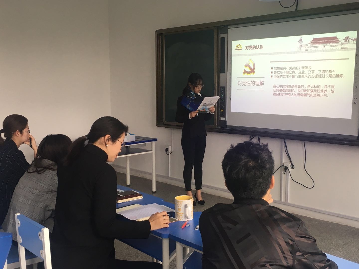 答辩过程中,21名参加答辩的同学依次上台讲述了自己包括学习成绩、奖惩情况、工作生活等方面的基本情况,表明了自己的入党动机和决心,并且分析了自己的优缺点,以及自己对未来的规划和展望。在每位同学讲述完后,评委们积极提问,从党的基本知识到政治时事,从生活作风到工作表现,从各个方面对参加答辩的同学进行考核,同时对他们的不足之处及时指出,帮助大家端正态度,明确目标。
