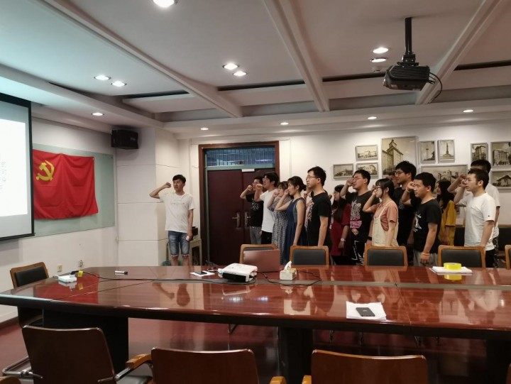 首先,党支部书记刘璇向与会党员介绍了学习党史的重要意义,明确提出学习党史可以从历史中汲取智慧和力量,是加强党的思想理论建设的重要任务,是继承党的成功经验和优良传统的需要。并且简要介绍了党史的时间脉络,带领大家重温中国共产党九十八年的艰辛与辉煌。随后,由贾绍华同学主持,带领大家重温入党志愿书,重温入党谈话。贾绍华同学带领支部全体党员,面向党旗,高举右手,庄严宣誓,激励每一位党员不忘本心,不改初衷,铭记党旗下神圣庄严的承诺,坚定一心向党的崇高理念,自觉加强自身党性锤炼和党性修养,更好的发挥党员的先锋模范作用。最后,共同学习习近平就不忘初心、继续前进提出八个方面的要求。