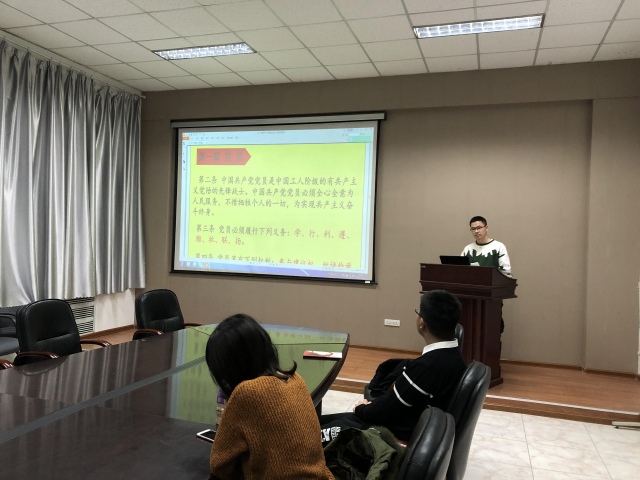本次活动首先由支部书记王茂荣组织党员对照党章规定的党员条件和义务权利,对照着《关于新形势下党内政治生活的若干准则》、《中国共产党纪律处分条例》,查找各位党员在自己的党员意识、担当作为、服务群众、遵守纪律、作用发挥等各方面的差距和不足。然后支部书记王茂荣和支部各位党员高文光、胡逸飞、邓慧分别分享了自己的不足之处,并一起讨论解决措施。最后根据学校学院下发的学习参考,大家一起学习了十九届四中全会的主要内容,内容包括:十九届四中全会的主要内容;六部门负责人对党的十九届四中全会精神的权威解读;人民日报评论员对十九届四中全会精神的讨论等。其中大家感悟最深的是人民日报评论员的一番话,中国特色社会主义制度是一个严密完整的科学制度体系,具有鲜明中国特色、显著制度优势。只有既坚持和巩固好,又完善和发展好,才能为实现“两个一百年”奋斗目标、实现中华民族伟大复兴的中国梦提供有力保证。