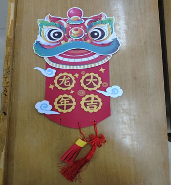 本次活动内容为师生手工制作皮影舞龙、龙年灯笼、舞狮挂件等代表着龙年新气象和传统文化的小物件。活动通知一经发布,得到同学们的热烈响应和广泛参与。大家充分发挥聪明才智,各展所长,在他们巧妙的设计与组装下,原本零零散散的原材料,逐渐组合成形,最终变化成精美绝伦的迎新作品。