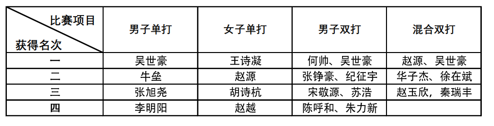 附件:羽毛球赛前四名名单