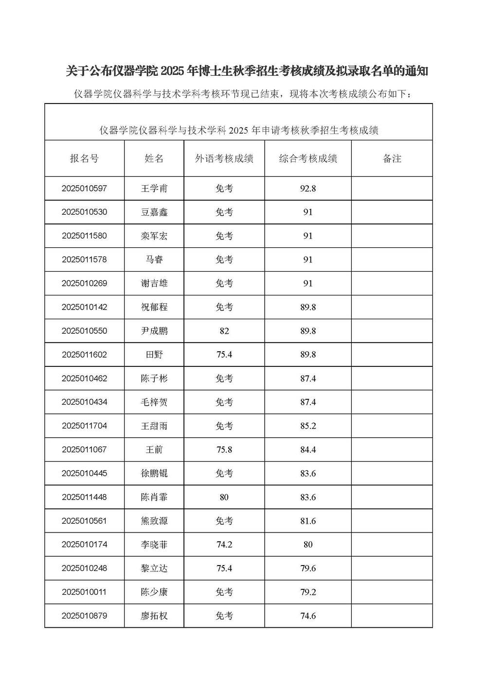 关于公布7M体育 2025年博士生秋季招生考核成绩及拟录取名单的通知