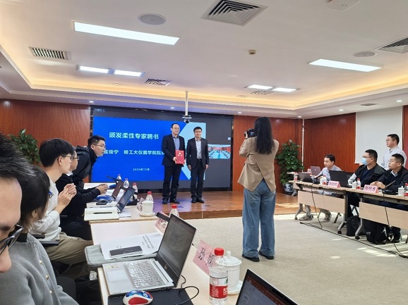 周舟对崔俊宁院长一行的到来表示欢迎,并为崔俊宁颁发柔性专家聘书。周舟从研究方向、人才梯队建设、科研项目合作等方面介绍了机床研究院的基本情况,指出未来可进一步深入互动的技术研究重点,并表示后续将抓好持续对接和成果落实,在重大项目布局、重大成果培育、科技战略咨询、创新人才培养等方面携手努力,共同取得新突破。