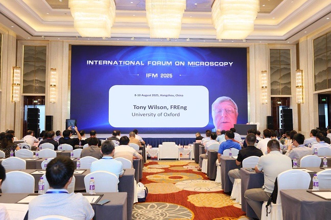 哈工大全媒体(李双余 王伟波/文 会务组/图)8月8日至10日,由中国工程院指导,中国仪器仪表学会和我校共同主办,中国仪器仪表学会显微仪器分会、北京信息科技大学等联合承办的第四届显微仪器技术国际高层论坛(International Forum on Microscopy,IFM2025)在浙江举行。中国仪器仪表学会副理事长、我校精密仪器工程研究院院长谭久彬院士担任大会主席并主持论坛。牛津大学托尼·威尔逊(Tony Wilson)院士,中国仪器仪表学会副理事长、秘书长张彤,北京信息科技大学副校长王兴芬教授出席论坛并致辞。